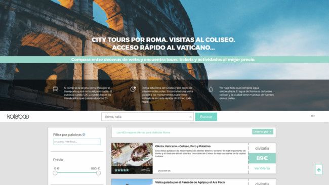 Kolaboo es el primer comparador de entradas a monumentos, visitas guiadas y excursiones. Compara entre las distintas webs de sus proveedores para que, en una sola búsqueda y en cualquier país del mundo, el usuario pueda encontrar la mejor opción al mejor precio.