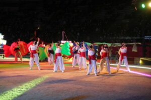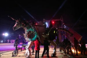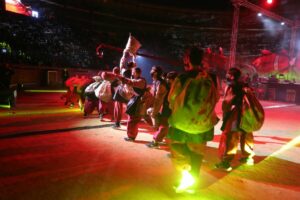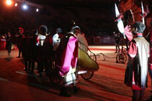 El espectáculo contó con la intervención de 16 compañías de ambientación, 4 agrupaciones musicales y una colla de dolçainers. En total, el acto se dividió en 12 secciones y tuvo una duración de cerca de tres horas.