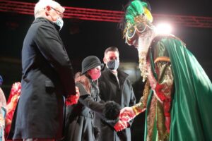 Al finalizar, los Reyes fueron recibidos por el alcalde de Valencia, Joan Ribó, el concejal de Cultura Festiva, Carlos Galiana, y la Fallera Mayor Infantil de Valencia, Nerea López Maestre, y pronunciaron un discurso para todos los niños y niñas de la ciudad de València.