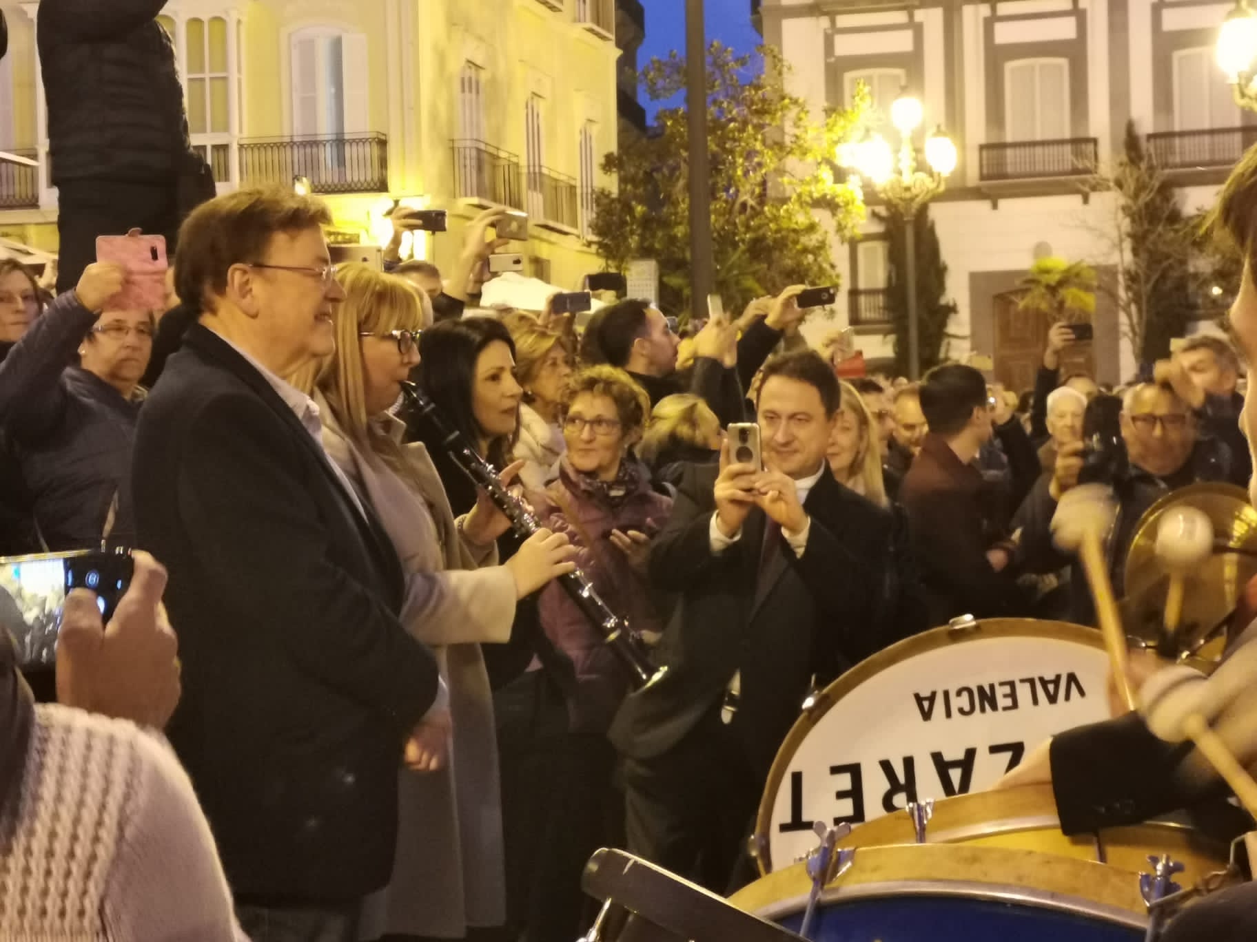 El president de la Generalitat, Ximo Puig, ha asistido este sábado al encuentro 'Gran Paquito', en el que medio millar de músicos y músicas procedentes de bandas de la Comunitat Valenciana han interpretado pasodobles en la plaza de la Virgen de València.