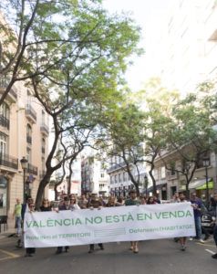 Este pasado sábado, 11 de mayo, 8.000 personas se han manifestado por las calles del centro de València, bajo el lema 'València no Está en Venta, Protegemos el Territorio, Defendemos la Vivienda'.