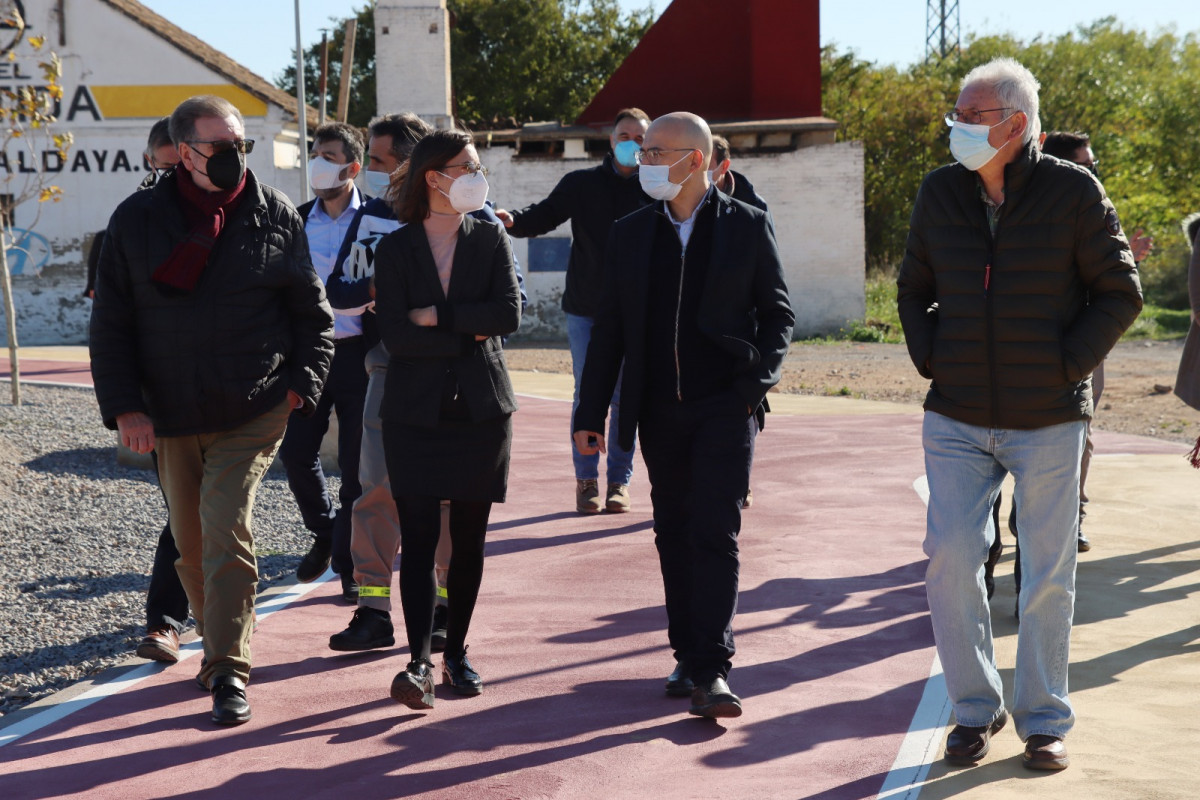 La Directora General de Obras Públicas, Transporte y Movilidad Sostenible, Roser Obrer y los alcaldes de las localidades de Alaquàs, Torrent y Picanya se daban cita recientemente para comprobar de primera mano los resultados de los trabajos de adecuación y mejora del itinerario ciclopeatonal correspondiendo a la CV-403, junto a las instalaciones deportivas del Terç.