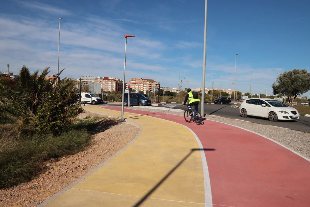 En este nuevo itinerario, que conecta los municipios de Torrent y Alaquàs, se ha ampliado la anchura de la plataforma existente donde se ha ejecutado un nuevo itinerario peatonal de 2 metros de ancho y se ha condicionado el firme del carril bici existente, de 2,5 metros de anchura. A su vez, se ha dotado de alumbrado a todo el itinerario ciclista y peatonal, al mismo tiempo que se ha implementado la señalización necesaria, barandillas y arbolado.