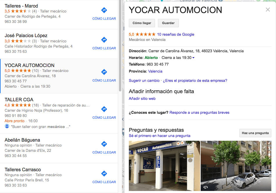 Trabajar con Google My Bussines en un taller mecánico