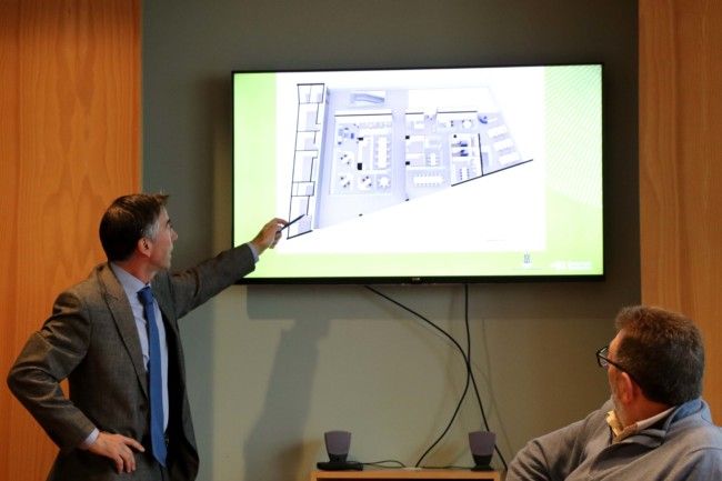Esta mañana, en el tradicional encuentro con los medios de comunicación del Ayuntamiento de Torrent, el gerente de la empresa mixta Aigües de l’Horta, Salvador Santamaría, acompañado por la concejala de Desarrollo Sostenible de Torrent, Inma Amat, ha presentado el proyecto de las nuevas oficinas de la entidad que se instalarán en el edificio de l’Antic Mercat y cuyo desarrollo se basa en valores de sostenibilidad y de trabajo en equipo.