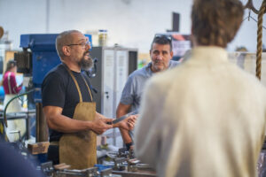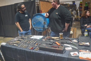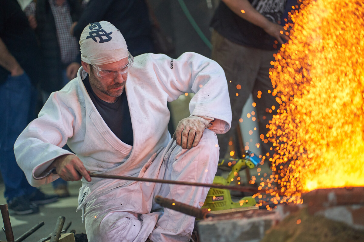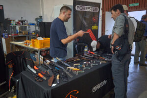 La tarde del viernes dio el pistoletazo de salida a la feria que prolongó su actividad durante todo el fin de semana con diferentes talleres. La segunda jornada realizó el taller de fundas de cuero tanto para hacha como para cuchillos, como también un ‘Taller Afilado’ en diferentes turnos en el que participaron numerosas personas. Por la mañana, se celebró la Master class de reducción de hierro a partir del mineral, que fue impartida por Thomas Mink.