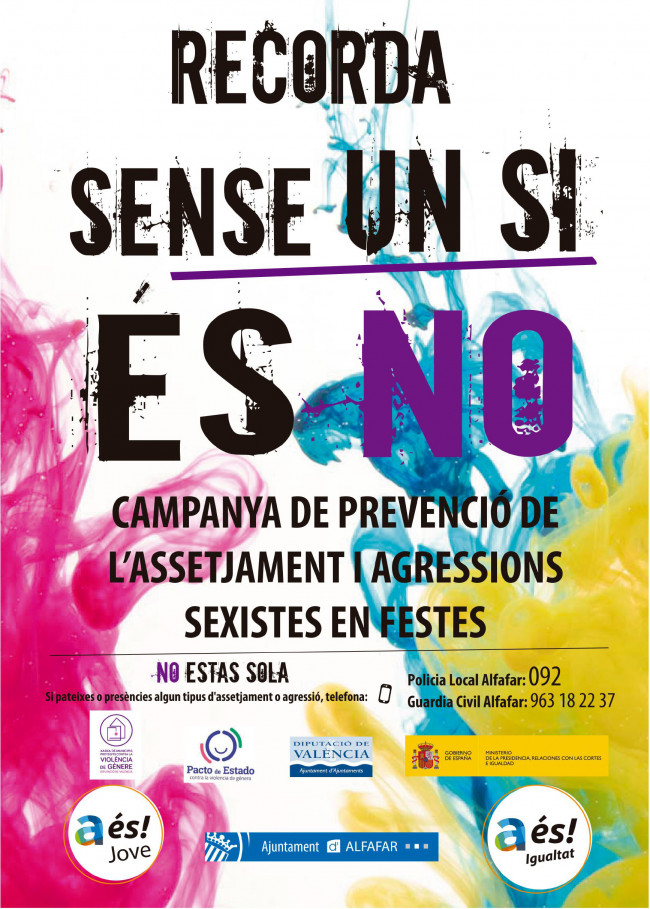 L’Ajuntament d’Alfafar, a través de sus áreas de Igualdad y Juventud, ha llevado a cabo una nueva campaña para la prevención y concienciación ciudadana contra las actitudes machistas, el acoso y las agresiones sexuales durante las fiestas patronales del municipio.