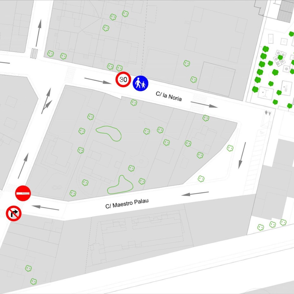 Según han explicado desde el consistorio de la localidad, esta actualización en la dirección de la circulación pretende mejorar la seguridad y accesibilidad del CEIP San Juan de Ribera y del polideportivo municipal El Paretó.