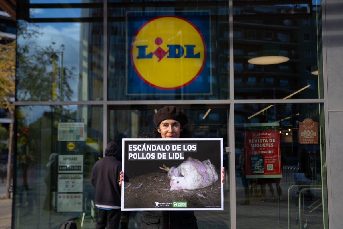 AnimaNaturalis ha demostrado que en algunos países de Europa, las macrogranjas de pollos que proveen de esta carne a Lidl no tratan a los animales como deberían. Pese a que lo han puesto en conocimiento del supermercado, este se niega a firmar el Compromiso Europeo del Pollo, el cual busca una crianza más natural y sostenible.