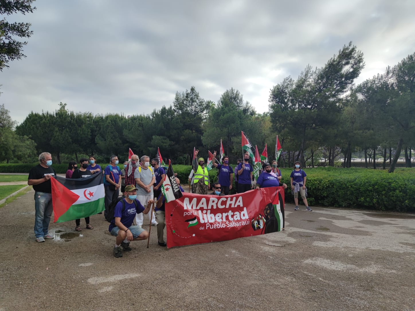 Este miércoles ha arrancado en València una marcha por la libertad del pueblo saharaui rumbo a Madrid. Desde el inicio del Parque Fluvial del Turia, una decena de personas ha emprendido el camino hasta la capital de España, donde aterrizará el 17 de junio tras recorrer los 440 km que cruzan las provincias de València, Cuenca y, finalmente, la Comunidad de Madrid. Allí confluirán con el resto de marchas procedentes de otras comunidades autónomas con el fin de entregar al Gobierno de Pedro Sánchez el manifiesto por la Libertad del Pueblo Saharaui.