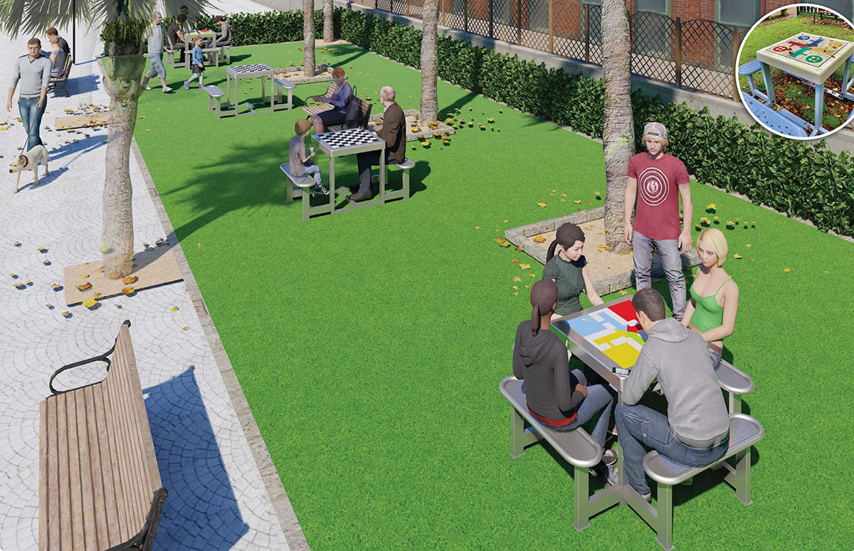 De la zona de ocio y descanso, Sergi Campillo ha detallado la posibilidad de ocio saludable que este espacio ofrecerá a la ciudadanía con mesas que contarán con parchís y ajedrez.