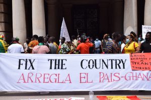 Es por ello que la Unidad de Ciudadanos Ghaneses y la Asociación de Ghaneses en Valencia se manifestaron contra el actual gobierno del país y los abusivos precios, por ejemplo, que mantiene el Consulado en Madrid a la hora de realizar trámites.