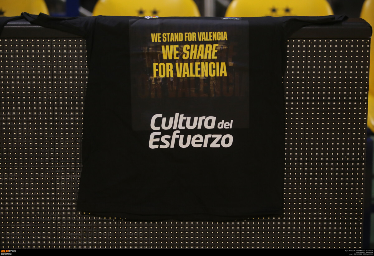 Valencia Basket rinde homenaje a las víctimas de la DANA durante un partido en la Fonteta y ofrece ayuda