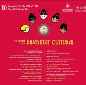 La celebración de esta jornada se hace en conmemoración de la Diversidad Cultural con la que se quieren crear espacios de encuentro entre las personas y las organizaciones que trabajan por la integración y la inclusión, a través de la cultura, de todas las personas que conviven en València, sea cual sea su nacionalidad de origen. En la jornada participarán grupos y asociaciones de ciudadanos y ciudadanas procedentes de Venezuela, Rusia, Argentina, República Dominicana, Japón, Bulgaria, Bolivia, Paraguay, Honduras, Perú, Camerún, Rumanía o Burkina Faso.
