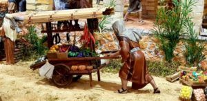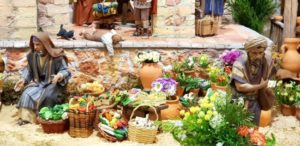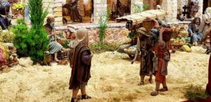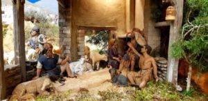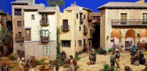 El belén muestra construcciones populares con más de 300 figuras, algunas de las cuales son piezas únicas, de varios escultores de primer nivel en este ámbito, como José Luis Mayo, H. Cerrada, Montserrat Ribes, Daniel Alcántara, Higinio Martínez, y los valencianos Enrique Villagrasa y Quique Garcés. Entre las piezas más singulares están las dos figuras humanas con los bueyes, hechos por Villagrasa; la figura del festejo de José y María, en la plaza del pueblo, obra de Garcés; también la casa del alfarero, la cabalgata de los reyes de Oriente o la cueva del nacimiento, con un gran trabajo de Mayo en los rostros de José y María, figuras cedidas por una familia de Belenistas valencianos para este belén. Un poblado lejano, el río o la anunciación a los pastores son otras de las escenas que completan esta obra artesanal dirigida por Carmen Chafer, Quique Garcés y Gonzalo Mateu.