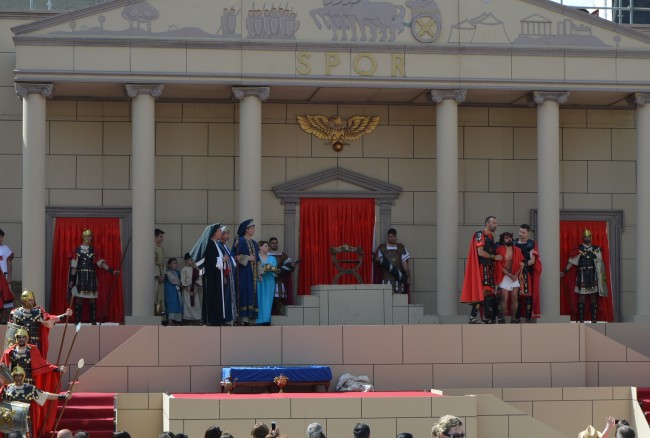 Si el año pasado se reunieron todos los actores que a lo largo de los casi 70 años representaron el papel de Jesús. En la mañana de Viernes Santo han sido ocho de las siete mujeres que, a lo largo de este tiempo, representaron el papel de la virgen María las que se han reunido como homenaje a todas ellas. No pudieron reunirse las ocho por el fallecimiento de una de ellas.