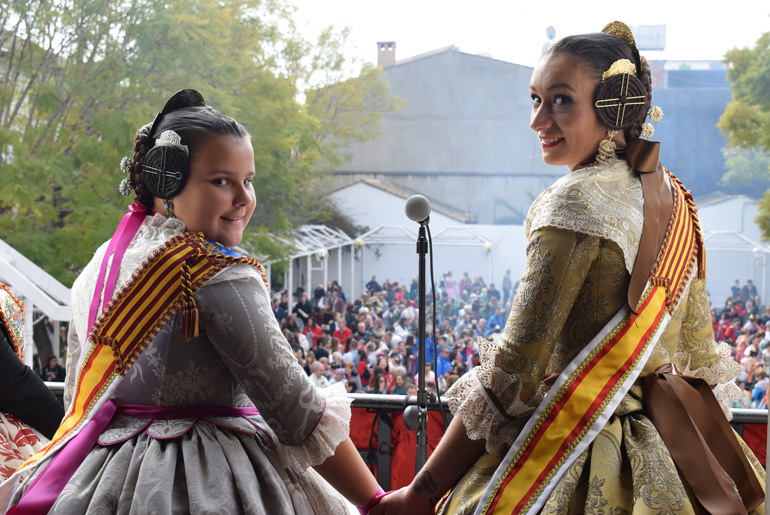 Alba y Vera han invitado a todos los vecinos y vecinas de la localidad a participar en la fiesta al grito de “que vixca Benetússer i que visquen les falles” desde la fachada del consistorio. Al termino de la Crida, todos los asistentes han cantado el himno regional.