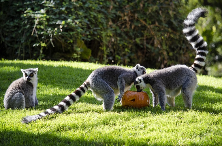 La temática de Halloween nos acompaña estos días y es un motivo más para realizar actividades diferentes con los animales que alberga Bioparc Valencia. Acciones que tienen como objetivo garantizar el más alto estándar de bienestar animal y que forman parte de las denominadas “técnicas de enriquecimiento ambiental”. De esta forma, esta mañana algunas de las especies más conocidas del parque han recibido una “deliciosa” sorpresa al salir a sus recintos exteriores, pues los cuidadores habían preparado una decoración especial que incluía las famosas calabazas rellenas de su comida preferida.