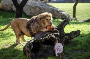 Lubango, el macho de león que continúa positivamente su proceso de adaptación, ha sido la primera vez que disfrutaba de estas acciones especiales. Se mostraba muy precavido al principio, especialmente curioso a continuación hasta que, finalmente, su olfato lo ha llevado a degustar la carne que los cuidadores habían escondido. También esta actividad ha sido una novedad para las jirafas que, aprovechando su largo cuello, fisgoneaban en busca de su comida. Una de las especies que más se ha deleitado han sido los suricatas que atrapaban enormes cucarachas y “apetitosos” gusanos. Los enormes elefantes arramblaban con todo lo que se ponía en su camino, pero cogían con delicadeza las calabazas que engullían enteras de un solo bocado. Por último, los lémures comían y lamian sus “chuches” en forma de fruta y muesli con miel.