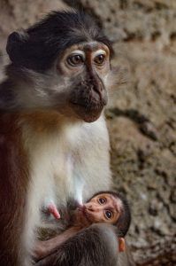 En Bioparc Valencia, en la zona que recrea las selvas de África ecuatorial, están de enhorabuena. Hace apenas unos días nacía una cría de mangabey de coronilla blanca (Cercocebus lunulatus), un hecho de gran relevancia debido al grave peligro de extinción al que se enfrenta esta especie. El parque valenciano alberga un grupo reproductor formado el macho Vito, tres hembras adultas, Juanita, Torcuata y Hope y las dos crías de ésta, Nasha, hembra de dos años y la recién nacida, de la que todavía se desconoce el sexo. Este nacimiento forma parte del programa internacional de conservación exsitu (EEP) en el que Bioparc participa y parece que el evocador nombre de la madre, Hope, representa esa “esperanza” para su especie. La cría se encuentra en buen estado de salud y ya puede verse con su familia en el recinto multiespecie que comparten con el grupo de gorilas “solteros”.