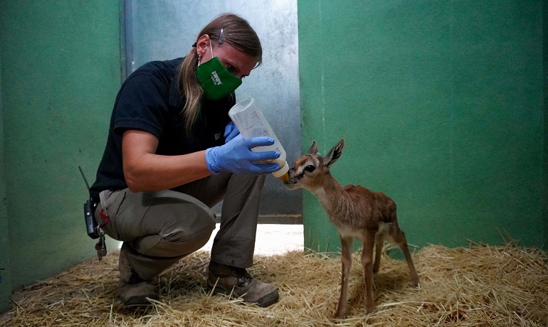 Este año el parque se ha llenado de esperanza con el “baby boom” que comenzó en el Estado de Alarma y que sigue este mes. Ahora ha sido la sabana la que ha recibido nuevas crías. Un nuevo blesbok (Damaliscus pygargus phillipsi), antílope que se caracteriza por las llamativas marcas blancas que vemos en sus rostros y que contrasta con el marrón rojizo de sus cuerpos. Este chivo se une a los otros dos nacidos en mayo. Otro antílope que acaba de reproducirse ha sido la gacela Thomson (Eudorcas thomsonii), especie que en España solo puede verse en Bioparc Valencia y en la reserva zoológica del desierto de Tabernas (Almería) donde se trasladaron varios machos nacidos y procedentes de Bioparc. Esta pequeña gacela es fácil de identificar por la presencia de una franja negra en sus costados que separa sus lomos de color marrón rojizo de sus blancos vientres. La recién nacida está siendo criada a mano por sus cuidadores al haber sido rechazada por la madre. Ambas especies comparten el espectacular recinto multiespecie que recrea la sabana, donde conviven con jirafas, diferentes aves como los jabirús, el ibis sagrado y la cerceta del Cabo; y otros dos tipos de antílopes, kobos e impalas.