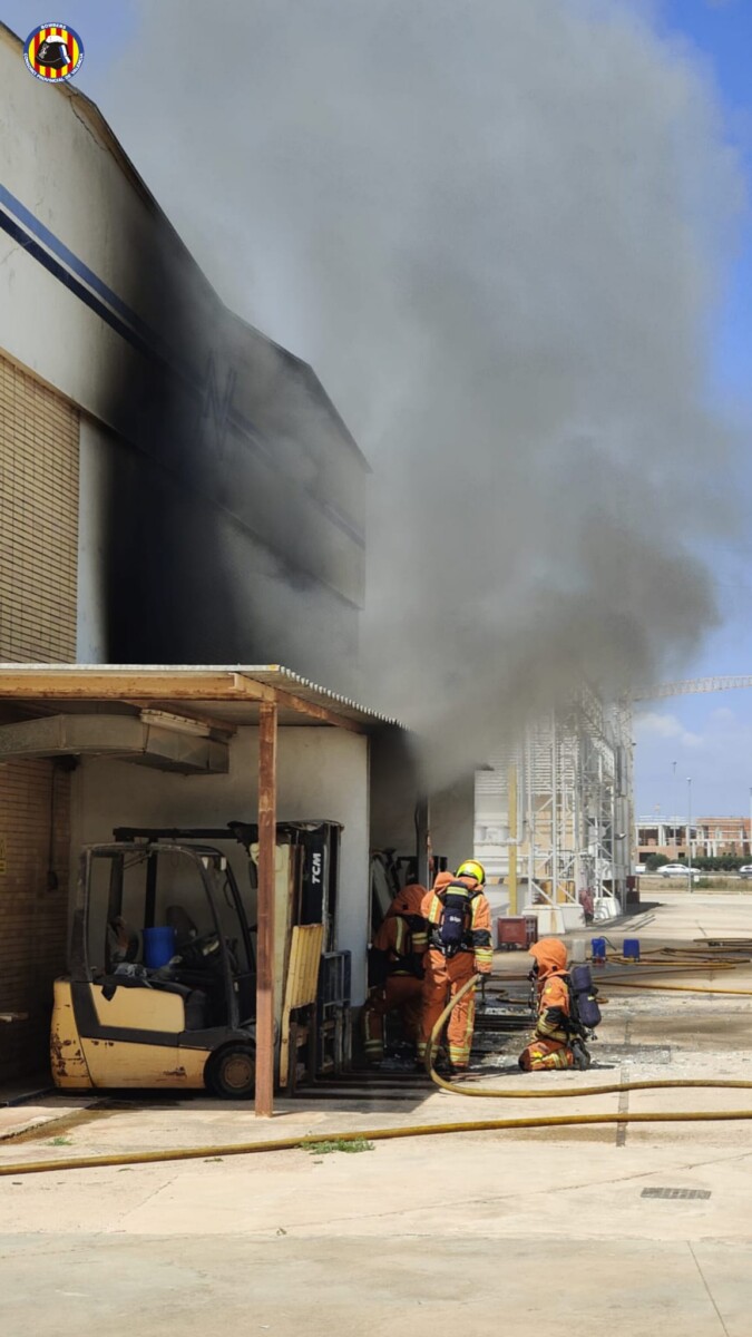 El Consorcio Provincial de Bomberos de Valencia ha intervenido este jueves en un incendio industrial declarado en una nave de productos químicos ubicada en el municipio de Beniparrell.