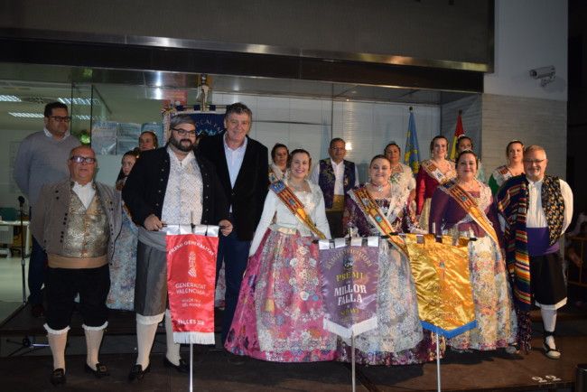 Las fallas Bressol del Moble y Sant Torquat fueron galardonadas con el premio a la mejor falla y la mejor falla infantil, respectivamente, a juicio del jurado compuesto por miembros de las Juntas Locales de Denia, Utiel y Tavernes de la Valldigna y recibieron sus premios en el acto que tuvo lugar en la Plaza Jaume I, en la puerta del Consistorio.