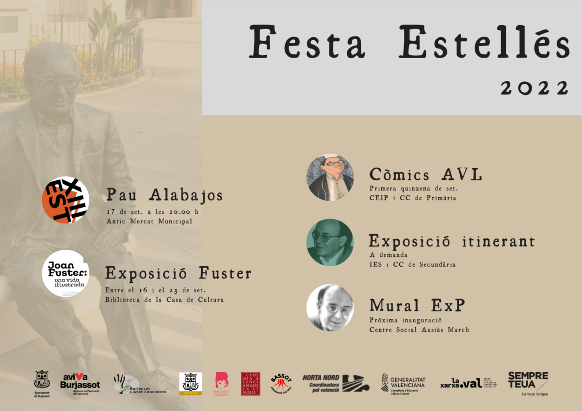 También se inaugurará en la Casa de Cultura una exposición sobre Joan Fuster, contemporáneo y amigo de Estellés, y del cual, en este 2022, se está celebrando el centenario de su nacimiento. La muestra se podrá visitar, entre el 16 y el 23 de septiembre, en la Biblioteca Municipal, situada en la segunda planta de la Casa de Cultura.