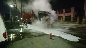 La cabina del camión quedó totalmente calcinada, pese a lo que los bomberos pudieron salvar la carga de las llamas.