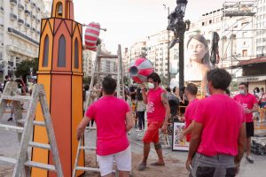 La falla infantil plasma en un mismo plano conceptual todos los personajes interpretàndolos como si de un teatro de marionetas se tratara, un conjunto de marionetas que actúan desde la falla para los visitantes y cuentan visualmente su particular historieta, aquello que les hizo únicos y únicas.