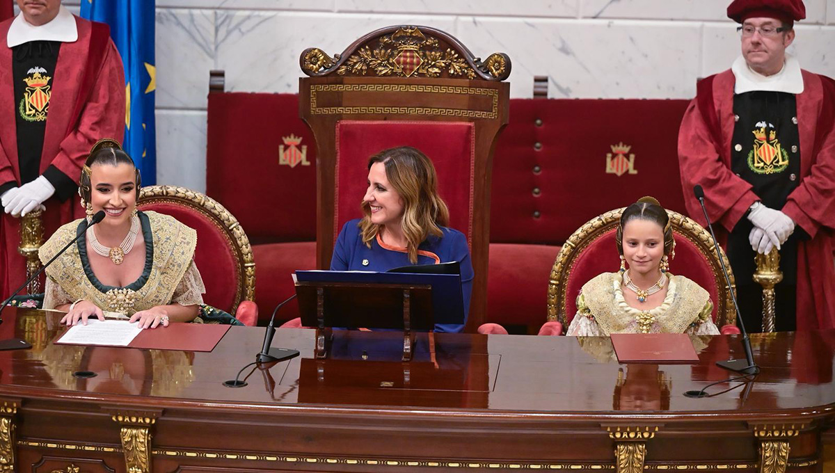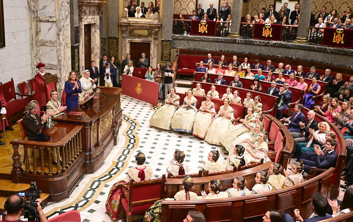 Tras pasar por el Salón de la Chimenea, donde concejales y autoridades también estarán presentes, se accederá en torno a las 19.30 horas al Hemiciclo para recibir, con todos los honores, a las nuevas Falleras Mayores de Valencia, que eran proclamadas como tales ante el mundo fallero.