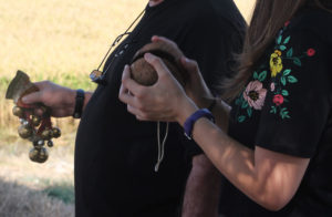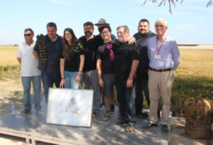 Mentrestant, Vicent Moncholí amenitzava l'escena explicant al públic, armat amb micròfon, històries i curiositats al voltant d'aquesta pràctica antiga, abandonada pels avanços tecnològics que amb el temps han canviat la mà d'obra humana per les màquines.
