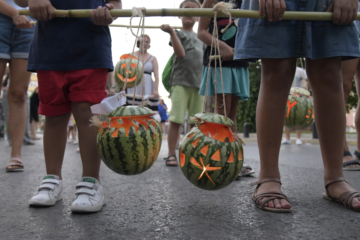 Niños y niñas, con ayuda de padres y madres, abuelos y abuelas, dedicaban la mañana a vaciar, decorar y encordar 'els melonets' para convertirlos en farolillos, con diseños muy imaginativos, originales y creativos.
