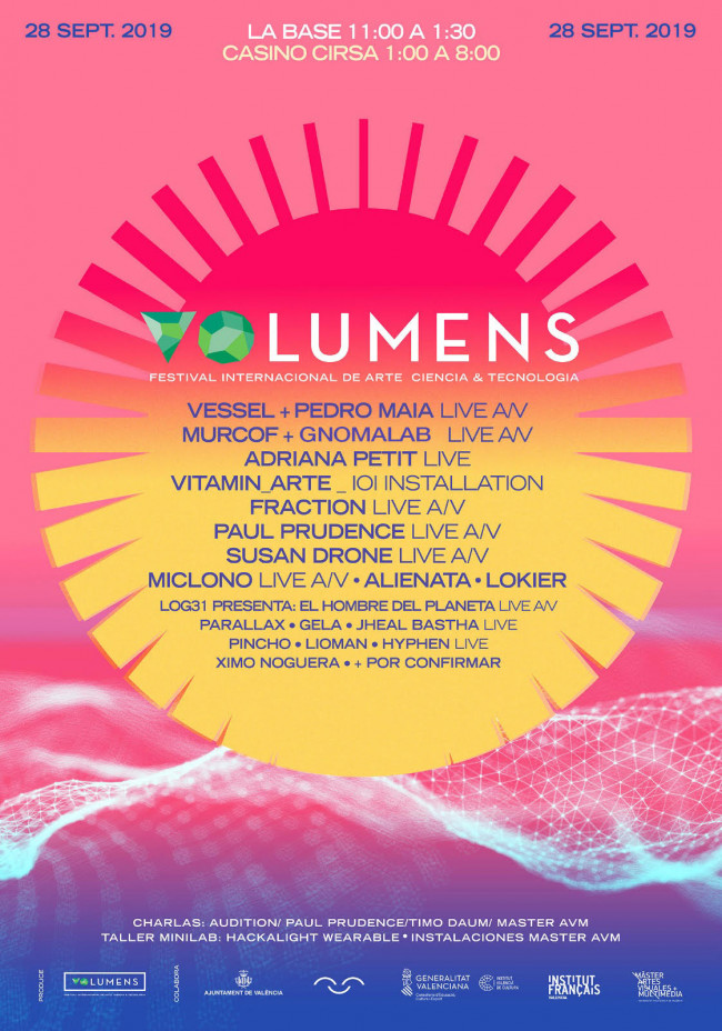 Uno de los platos fuertes de VOlumens son los Lives A/V, que en esta tercera edición actuarán en el escenario Albert Einstein en La Base de La Marina. A los ya anunciados anteriormente, como Paul Prudence y Murcof junto a los visuales de Gnomalab, se siguen sumando artistas de gran tallaje como el compositor y productor Vessel uniendo su música a los visuales del cineasta portugués Pedro Maia.