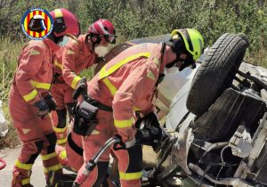 El conductor ha quedado atrapado en el interior del vehículo, teniendo que ser excarcelado por los bomberos del Consorcio Provincial.