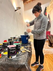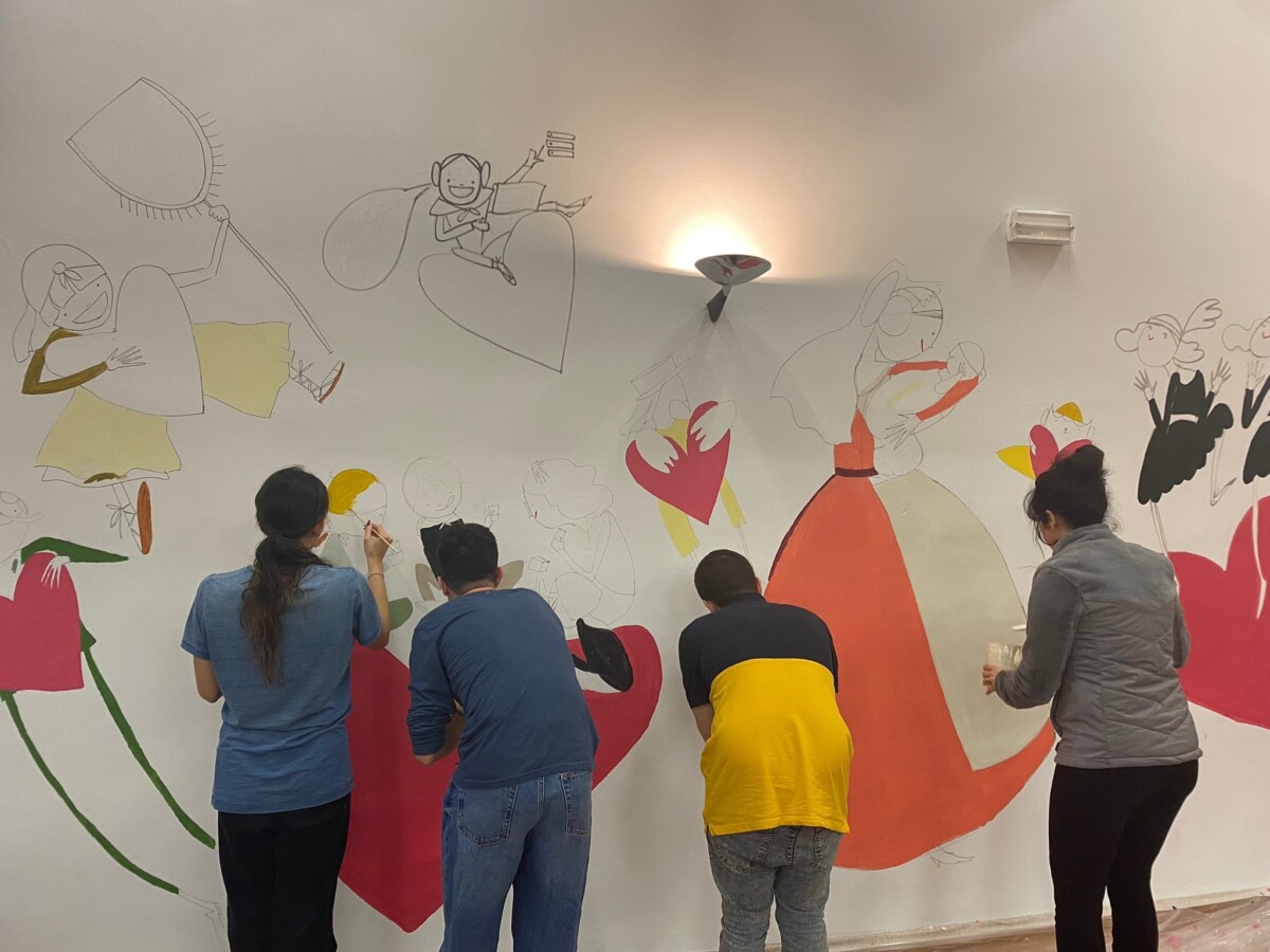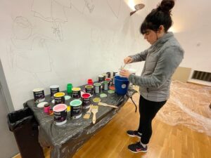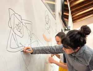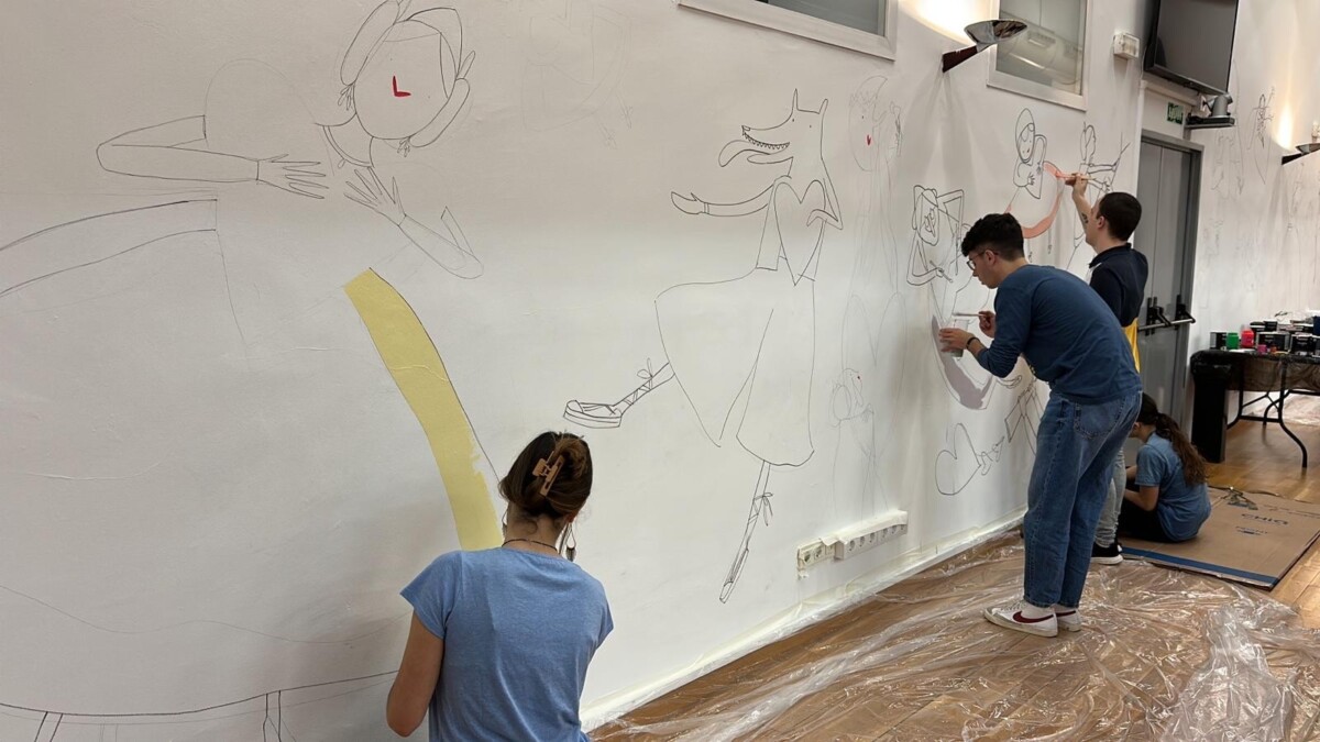Este martes ha empezado la realización de un mural colaborativo que presidirá a partir de ahora de forma permanente el Salón de Plenos de la sede de Junta Central Fallera, en la avenida de la Plata de València, bajo el lema ‘Tinc la festa dins del cor’, diseñado por la reconocida artista Marina Puche y pintado por jóvenes falleros.
