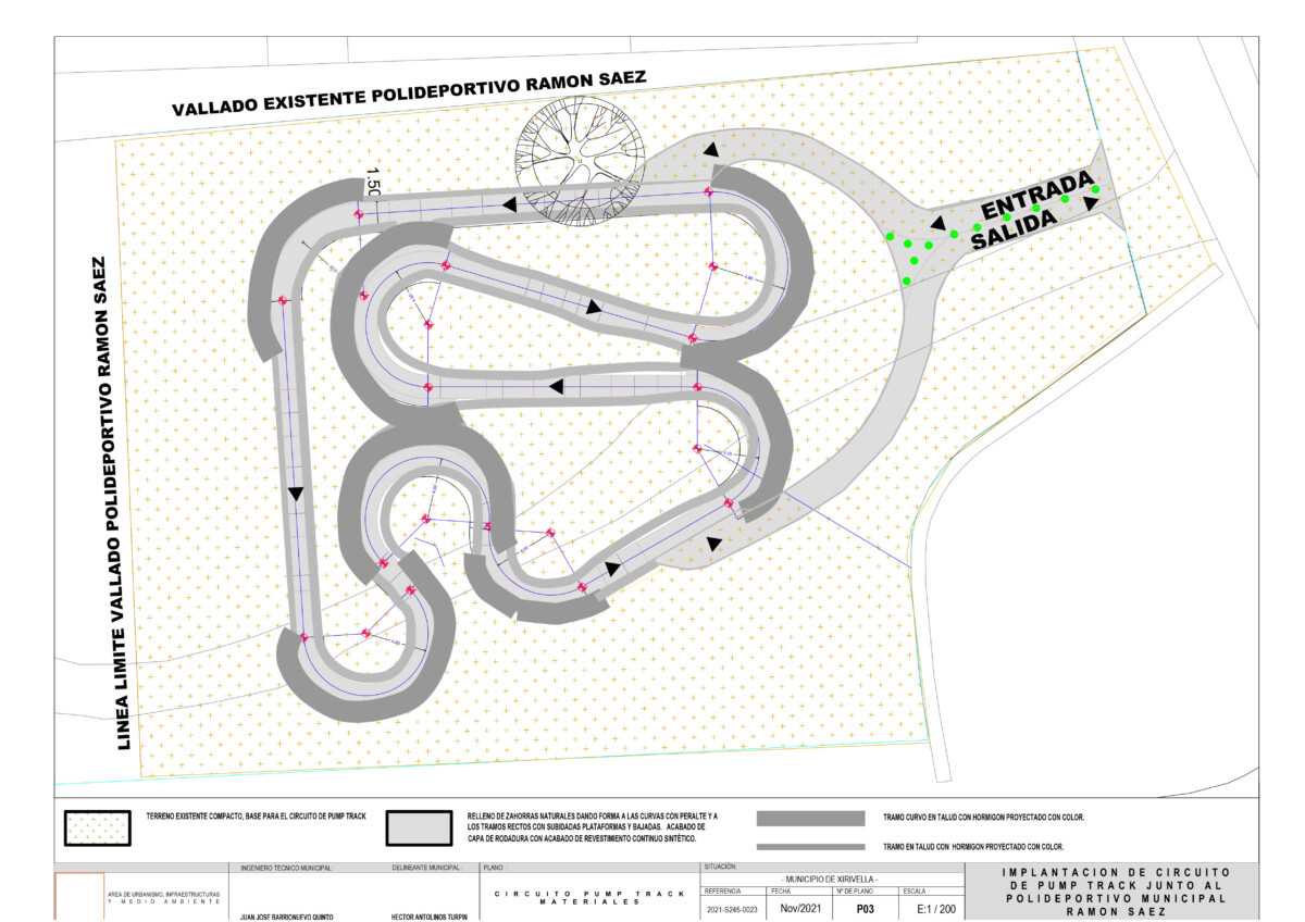 El circuito tendrá 200 metros lineales con siete curvas, dos de ellas de 90 grados y el resto de más de 180, y peraltes de 1,4 metros que dotan a la instalación de dinamismo y velocidad. El pump track cuenta con un presupuesto de 145.000 euros.