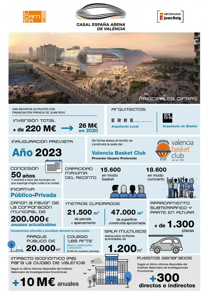 Licampa 1617 – Casal España Arena de València se enmarca dentro del Mecenazgo del proyecto Legado de Juan Roig y, como el resto de iniciativas que componen este Legado, como Marina de Empresas, Fundación Trinidad Alfonso, Valencia Basket y L'Alqueria del Basket, entre otras, persigue compartir con la ciudad de València y la Comunitat parte de lo mucho que de ella recibe.