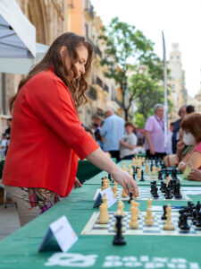 La visita de Judit Polgar concluyó el sábado por la mañana con la disputa de unas simultáneas en las que se enfrentó a 20 jugadores de todas las edades. Durante aproximadamente tres horas, aficionados y turistas disfrutaron de la técnica de la mejor jugadora de ajedrez de la historia en el corazón de València: la recién remodelada Plaça del Mercat, junto a la Lonja.
