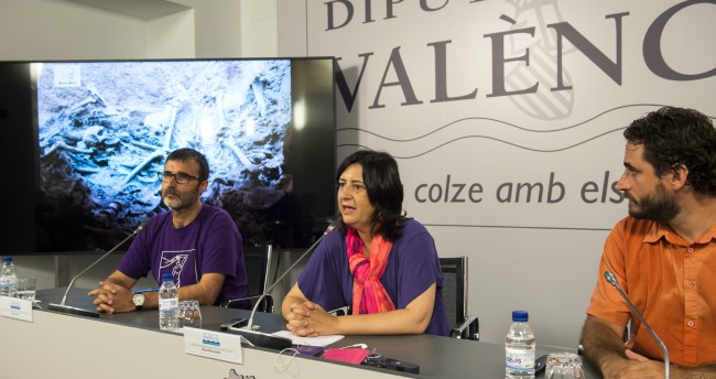 Los trabajos de exhumación que se estaban realizando en la fosa 113 del cementerio de Paterna han concluido esta semana. Finalmente, se han recuperado 49 cuerpos -más otro que se ha sacado de un nicho tras ponerse en duda su identidad- de represaliados del Franquismo. El director arquélogo de la excavación, Miquel Mezquida, ha comparecido hoy en rueda de prensa junto al presidente de la asociación de familiares de víctimas de la fosa 113, Santi Vallés, y de la diputada de Memoria Histórica, Rosa Pérez Garijo, para hacer públicos los resultados de la fase de excavación.