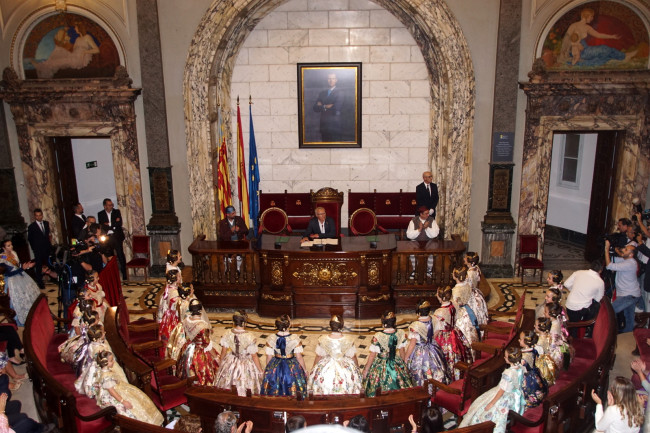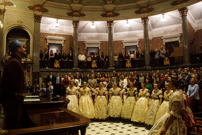 Fotos: Antonio Cerveró.- Segundo día grande para los falleros y falleras de toda Valencia en el ejercicio 2019-2020. El Ayuntamiento del Cap i Casal, vestía sus mejores galas para recibir, apenas 24 horas después de la tradicional llamada del alcalde, a las nuevas Falleras Mayores de Valencia.