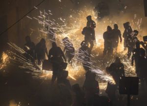 Las imágenes no logran captar el mayor valor de la Cordà 2018, que es el estruendo, el temblor del suelo, el olor a pólvora que lo llena todo, pero sí la plasticidad, el brillo, el color y los contrastes que el fuego abre en la oscuridad de la madrugada, y que el fotógrafo festivo Manolo Guallart sabe captar como nadie.