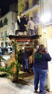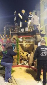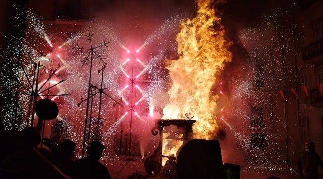 Transportados como por arte de magia al año 1895, en la plaça de la Santa Creu, el presidente de Junta Central Fallera, Pere Fuset, acompañado por un buen número de falleros y falleras del barrio del Carmen, procedieron a la Cremà de la falla que se había plantado la noche anterior.
