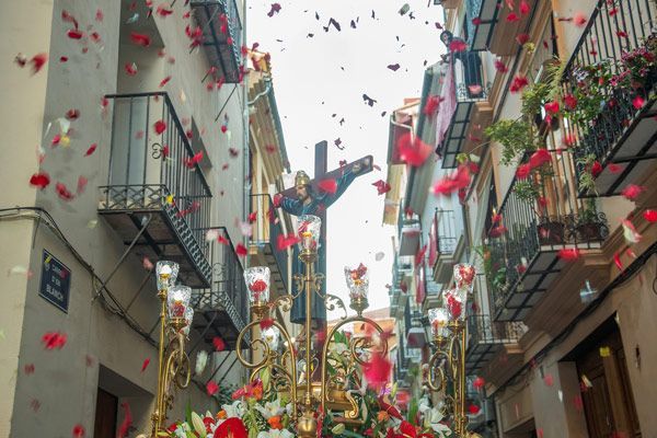 La procesión por las calles del barrio de la Xerea con la imagen, acompañada por centenares de devotos, tuvo lugar el domingo, por la tarde, tras la tradicional ´enramà de la murta`. El itinerario discurrió por las calles de Trinquete Caballeros, plaza del Temple, Conde de Montornés, Gobernador Viejo e iglesia de San Juan del Hospital, hasta la plaza de Sant Bult, donde quedó instalada en un altar.