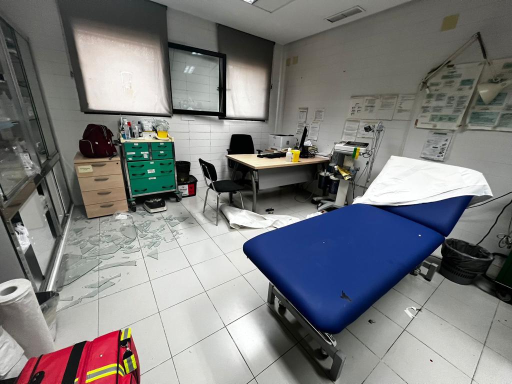 No obstante, la paciente se levantó, volcó la citada camilla y rompió los cristales de la vitrina. El sindicato continúa relatando que la paciente tomó del suelo varios cristales y
