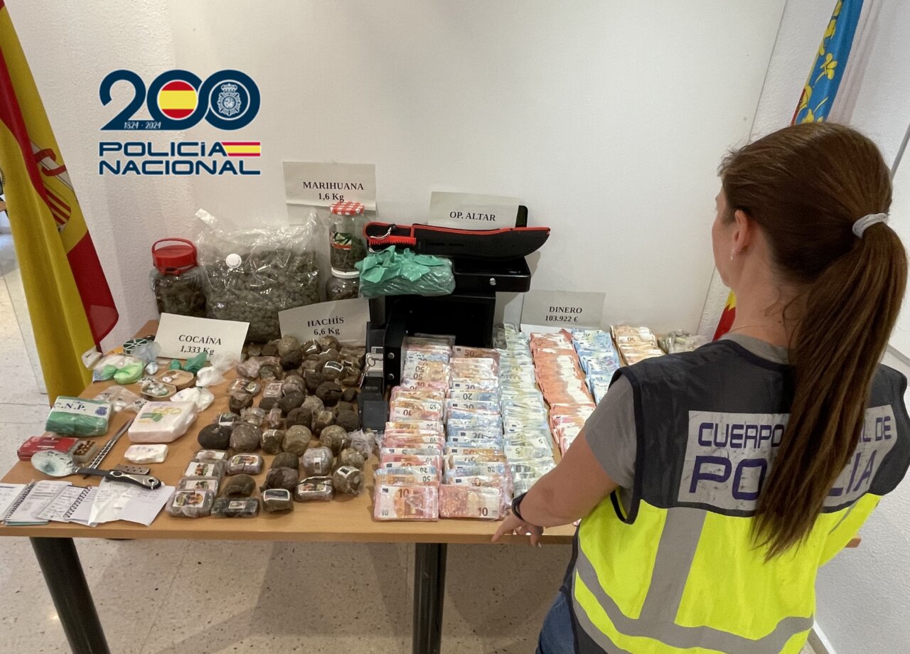 Se incautaron más de un kilogramo de cocaína, aproximadamente dos kilos de marihuana, casi siete de hachís, 80 gramos de precursores, más de 106.000 euros en efectivo, cinco básculas de precisión, así como libretas con anotaciones manuscritas, útiles para empaquetar la droga y 14 cartuchos de munición.