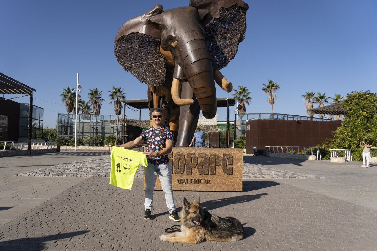 David Casinos, acompañado por su inseparable perra-guía Farala, ha acudido esta mañana a Bioparc para presentar la camiseta oficial de esta edición virtual de la Can-rrera. Este destacado deportista valenciano de impresionante trayectoria internacional y que cada día sigue siendo un ejemplo de esfuerzo y superación, ha mostrado una vez más su faceta más solidaria con el apoyo a esta tradicional cita que tiene como objetivo concienciar sobre la necesidad de respetar y velar por el bienestar de los animales.