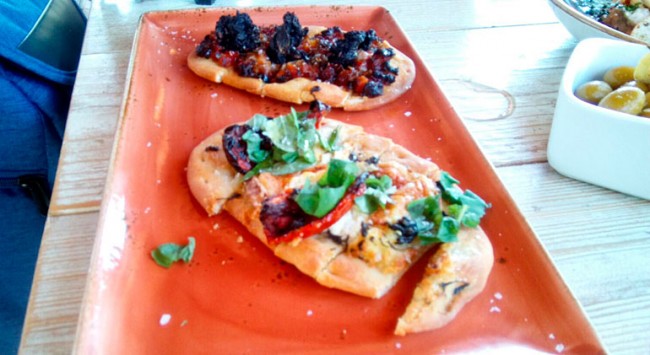 Obrim boca amb un entrant que ens acaba de submergir en la música pausada i relaxant que envaeix tot el local. Bunyols cremosos de bacallà amb alioli. Suaus, impressionantment equilibrats en sabor i consistència. Una delícia.
