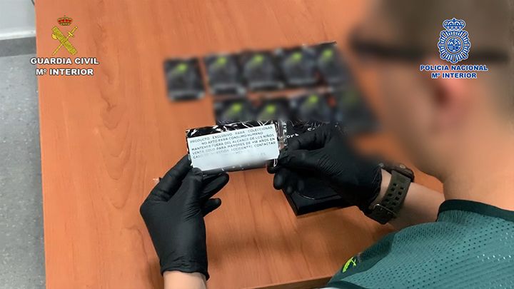 Los agentes interceptaron varios lotes de productos comercializados con nombres en su etiquetado como ‘Segador’ y ‘Exclusivo’. En estos casos, se trataba de cannabinoides sintéticos y una combinación de cafeína y mefedrona, respectivamente. Esta última sustancia provoca sobrecalentamiento, sudoración exagerada, deshidratación, aumento del ritmo cardiaco, que podría llevar al fallo cardiaco en personas con problemas de corazón. El efecto es menor al de la cocaína con lo que se consume en mayores dosis, pudiendo causar hemorragias severas tras la ingesta esporádica.