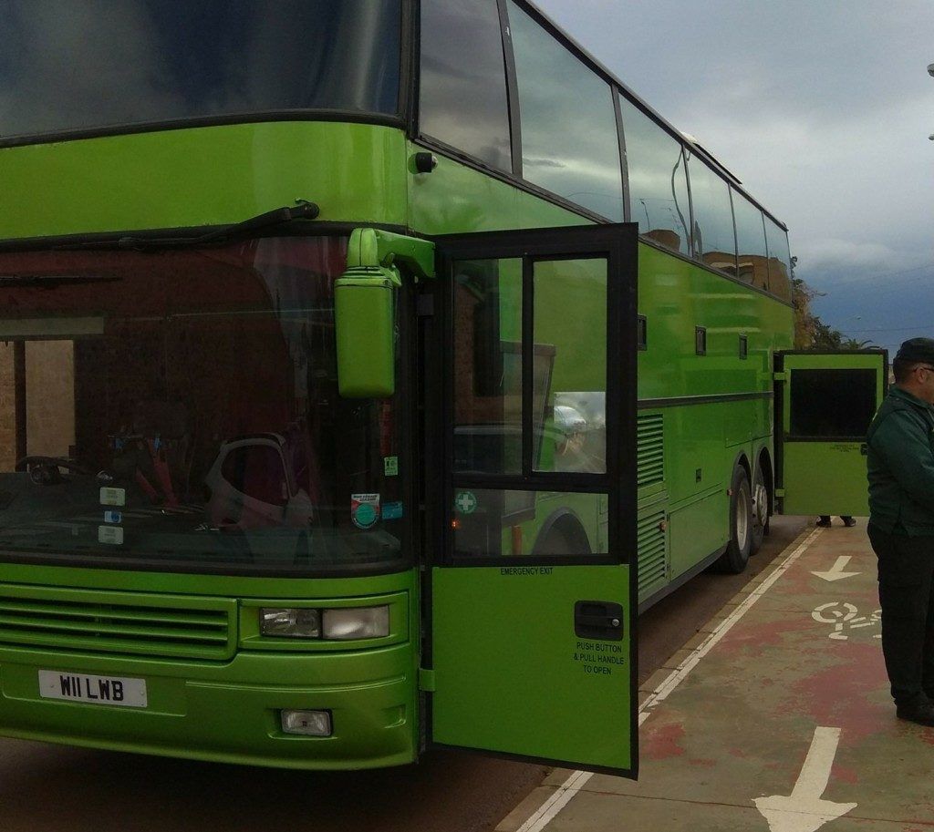 Los dos hombres, de 39 y 59 años de edad y nacionalidad británica, viajaban en la madrugada en un autobús de dos pisos, parecido al que usan los grupos de música para sus giras, desde Málaga hacia Inglaterra.